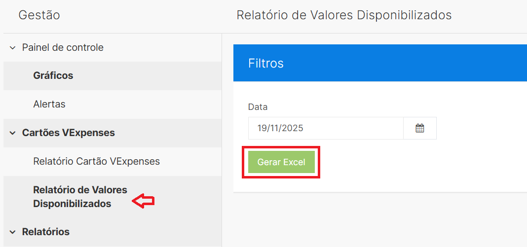 O relatório de valores disponibilizados é um relatório via Excel para que gestores de contas possam acompanhar os valores que estavam disponíveis nos cartões dos usuários em determinadas datas específicas.