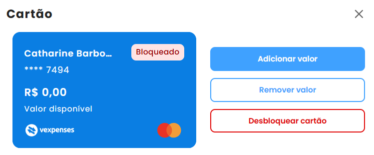 2. Ao selecionar o cartão, clique na opção “Desbloquear Cartão”.
