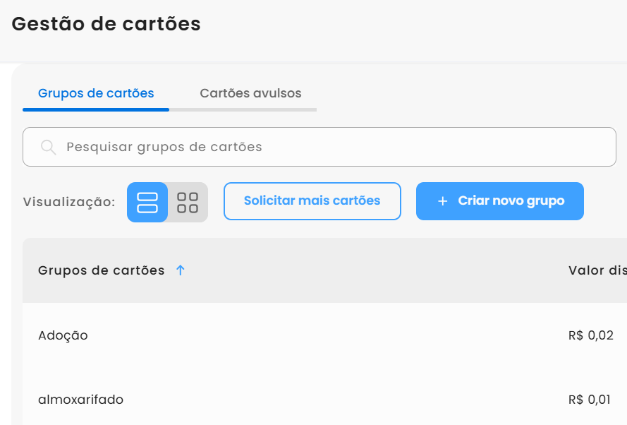 Caso valores sejam removidos de um cartão que está em um grupo, o montante será retornado como "valor não alocado" para aquele grupo. Assim, o gestor de grupo poderá distribuir aquele valor em outros cartões, se desejar.