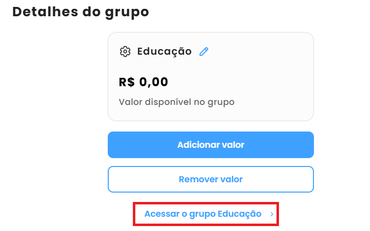 Caso o grupo não tenha valores disponíveis para alocação, é necessário que um gestor de contas - que possui acesso para gerir todos os valores da empresa - adicione valores aquele grupo. Portanto, o primeiro passo é conferir qual o valor que seu grupo possui.