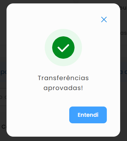 9. Pronto! Irá aparecer uma mensagem informando que as transferências foram aprovadas.
