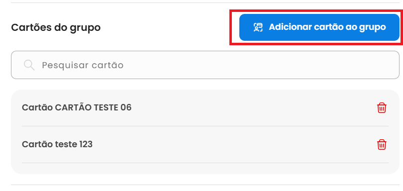 4. O cartão será adicionado com sucesso ao grupo e aparecerá na listagem, como no exemplo abaixo: