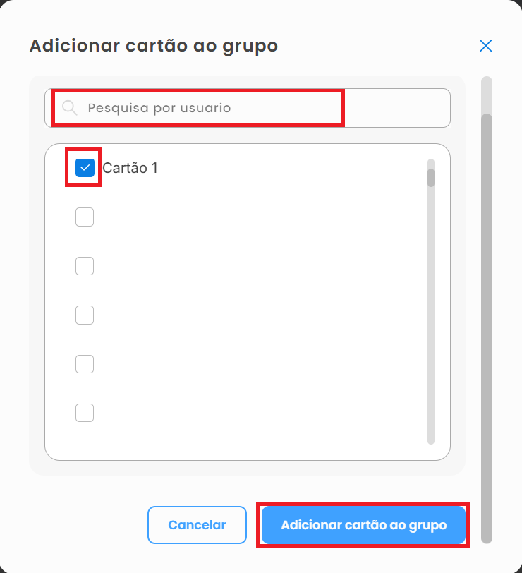 1. Para adicionar um novo cartão ao grupo, clique em "Adicionar cartão ao grupo".