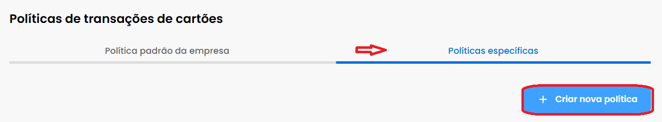 Todos os cartões da empresa, assim que ativados, seguem as regras determinadas na Política Padrão da Empresa, exceto os cartões vinculados a uma política específica.