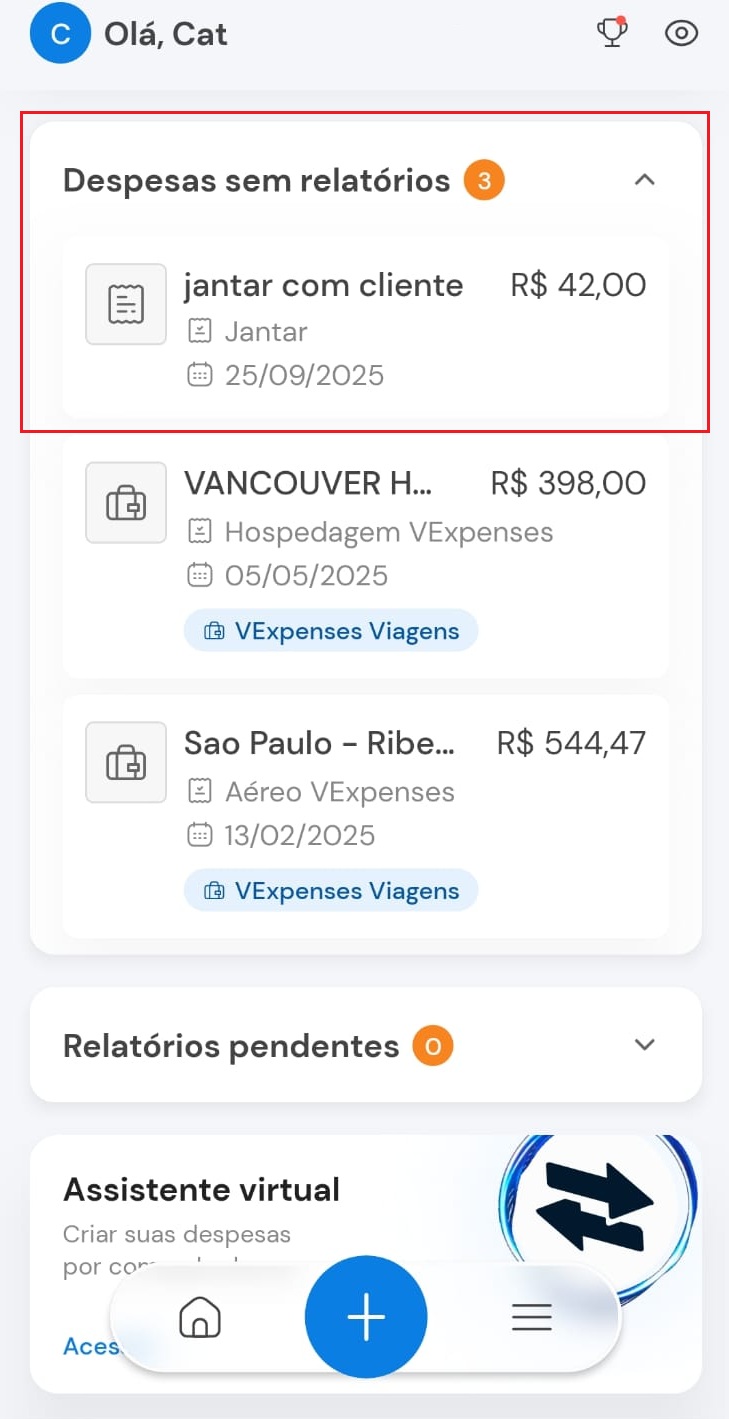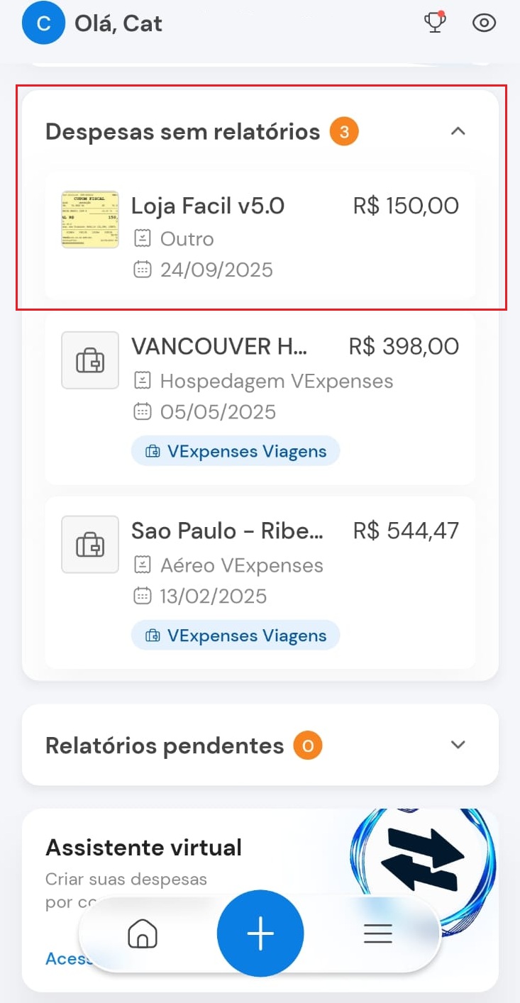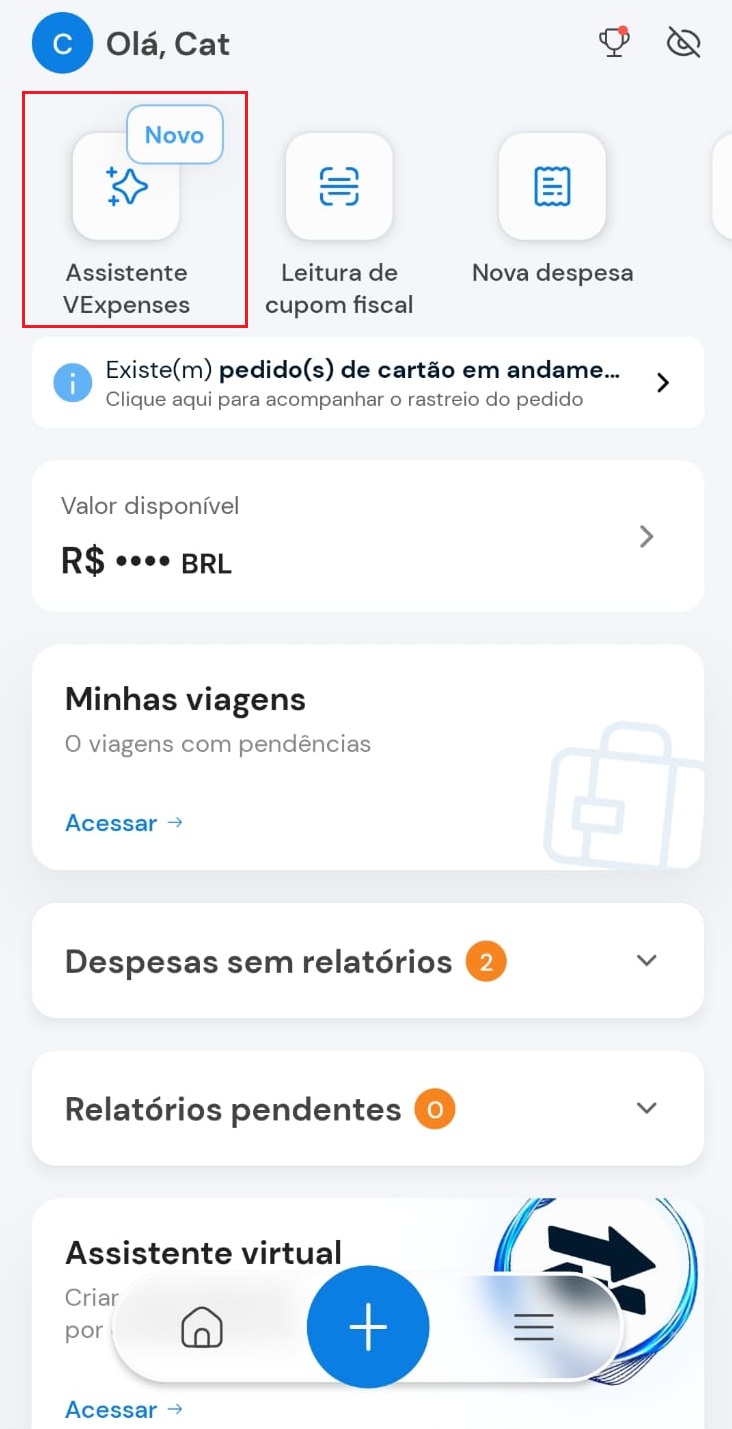 1) Abra o aplicativo VExpenses e clique em "Assistente VExpenses"