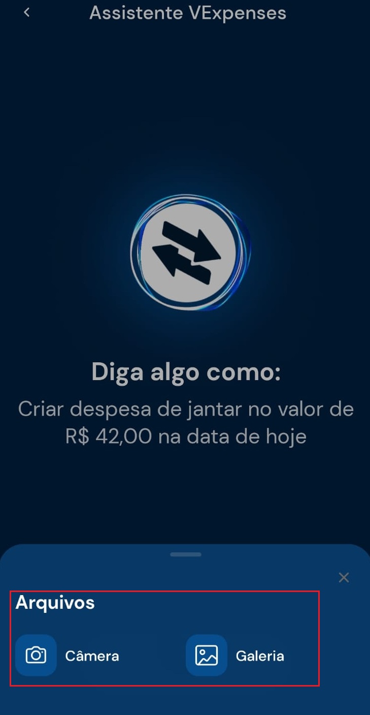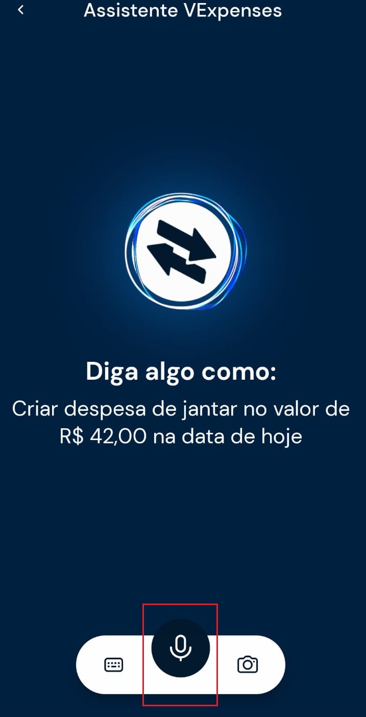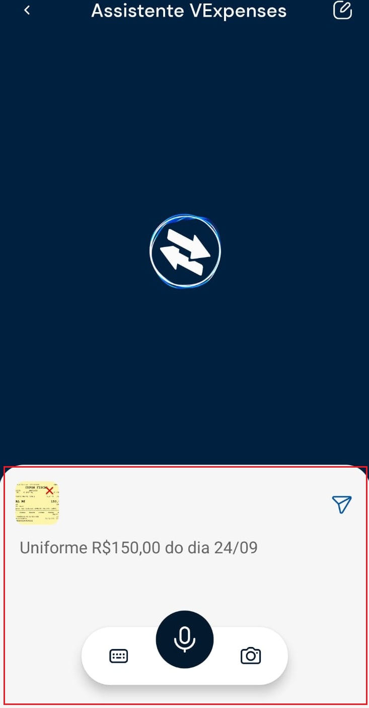 O Assistente VExpenses foi criado para tornar o registro de despesas ainda mais simples no dia a dia. Com ele, é possível lançar despesas de três formas diferentes: por comando de voz, por texto ou a partir da imagem da nota fiscal para você escolher!