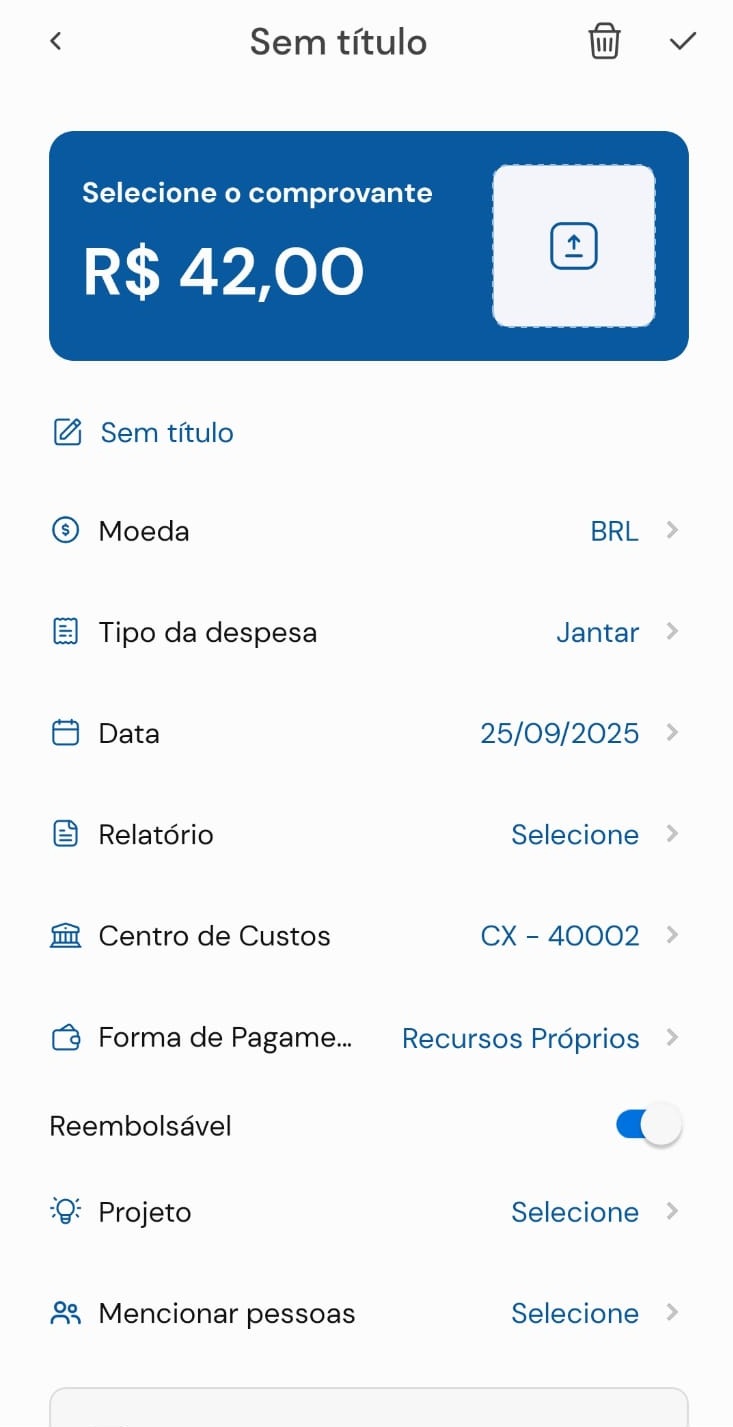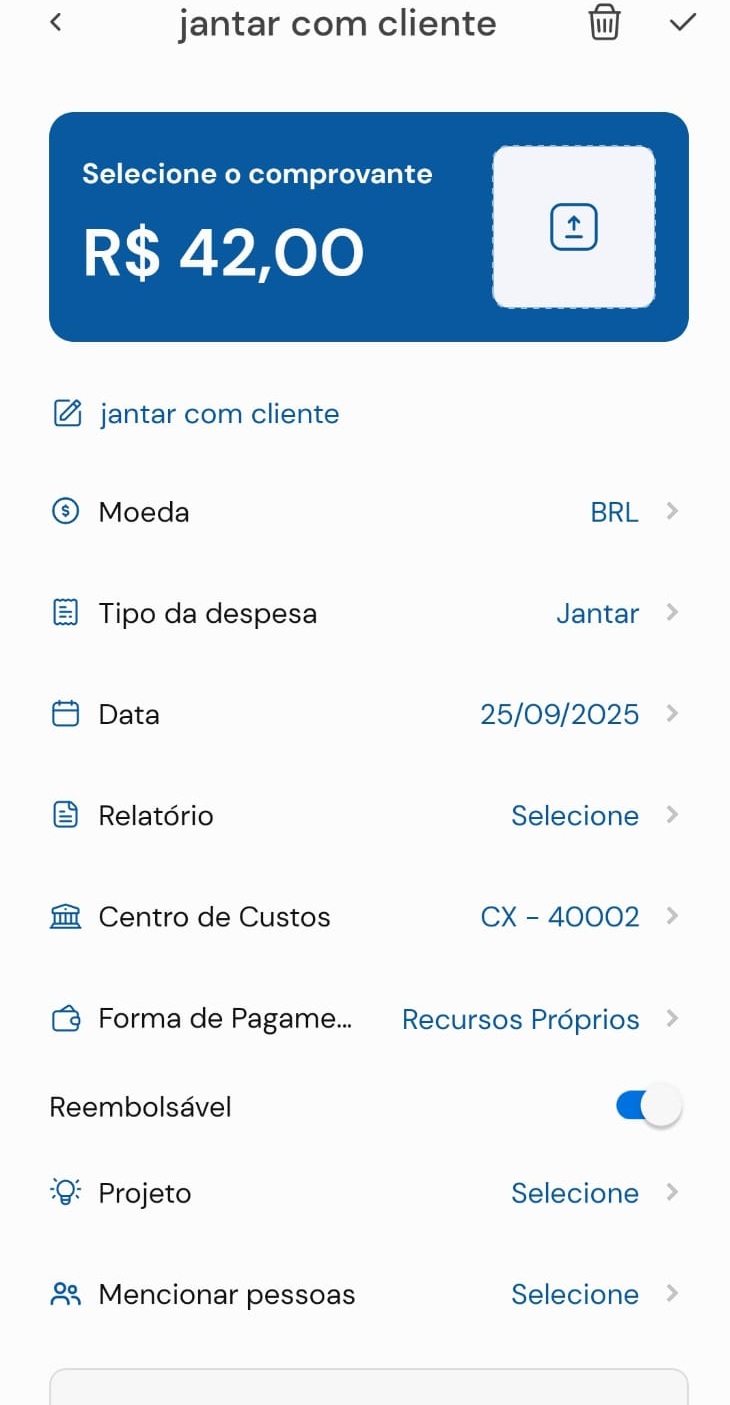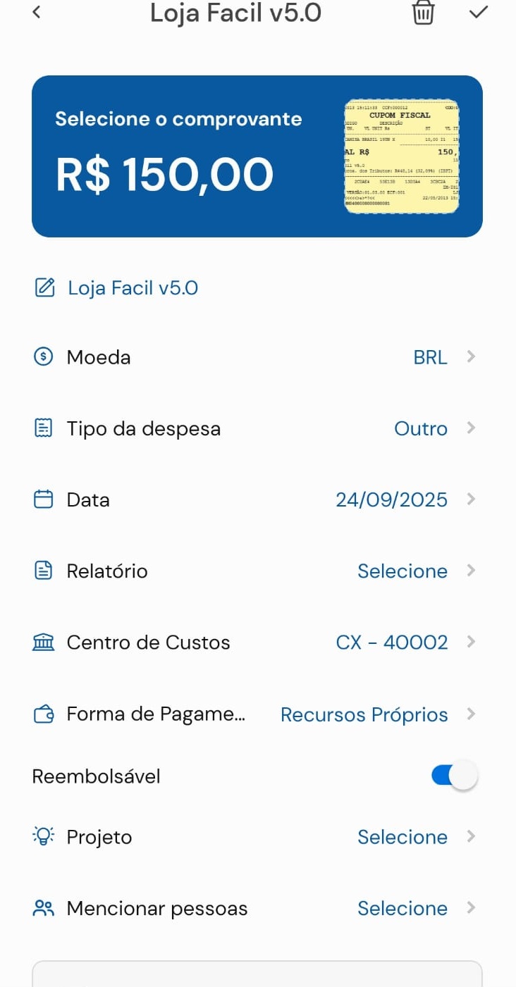 Como criar despesas com imagem da nota fiscal