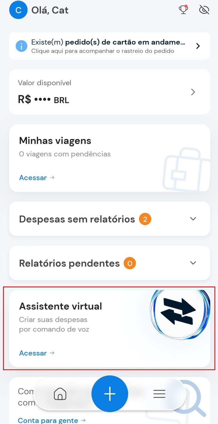 Além de criar despesas por voz, você também pode digitar as informações. Para isso, basta seguir as etapas: