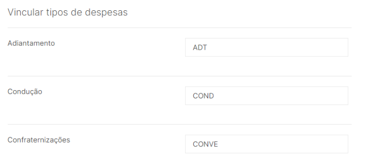 - Os tipos de despesas cadastrados na VExpenses também precisam ser relacionados com os códigos dos tipos de despesas cadastrados no Matera.