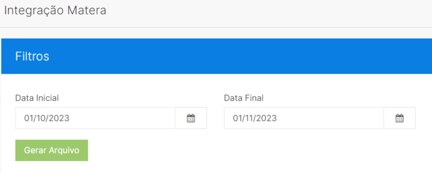- Identificador da Empresa Matera: ID da que a empresa possui no Matera.
