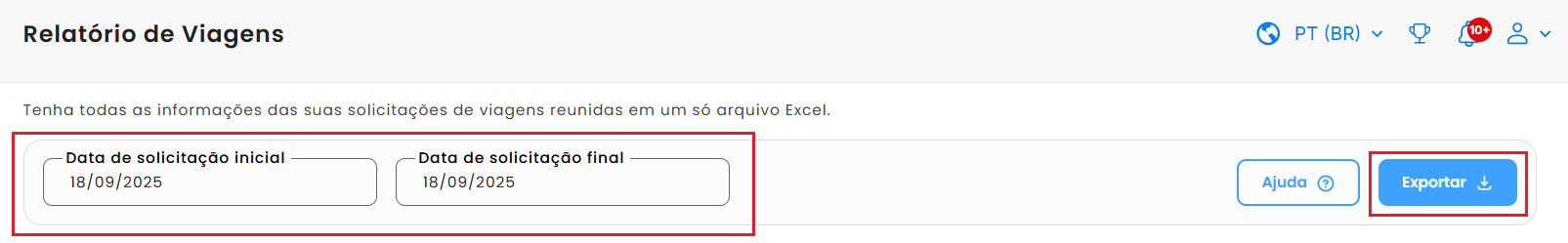 Por exemplo: hoje é dia 18/09/2025, você poderá buscar dados a partir de 20/07/2025.Após selecionar o período, clique em "exportar":
