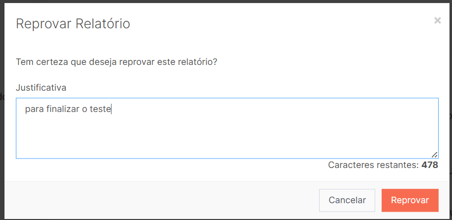 - Nesse cenário, solicite ao aprovador a reprovação desse relatório;