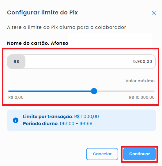 4. Defina o valor do limite que deseja e clique em Continuar;