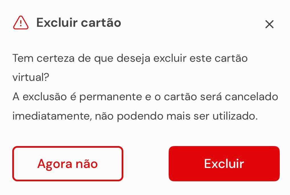 COMO EXCLUIR UM CARTÃO VIRTUAL?