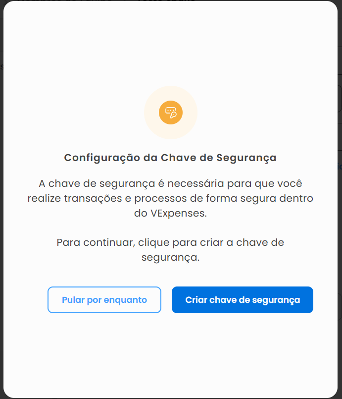 ⚠️Importante: Atualmente, não há uma opção de redefinição da Chave de Segurança dentro da plataforma. Em caso de esquecimento ou outro problema, é necessário entrar em contato com a nossa equipe de suporte para obter auxílio.