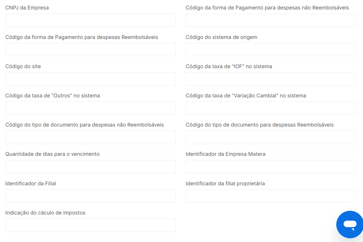 - Código do tipo de documento para despesas não Reembolsáveis: Código do Matera do tipo de documento para as despesas da VExpenses que não são reembolsáveis.