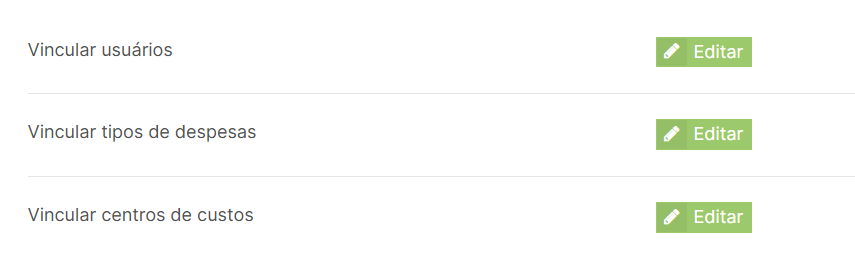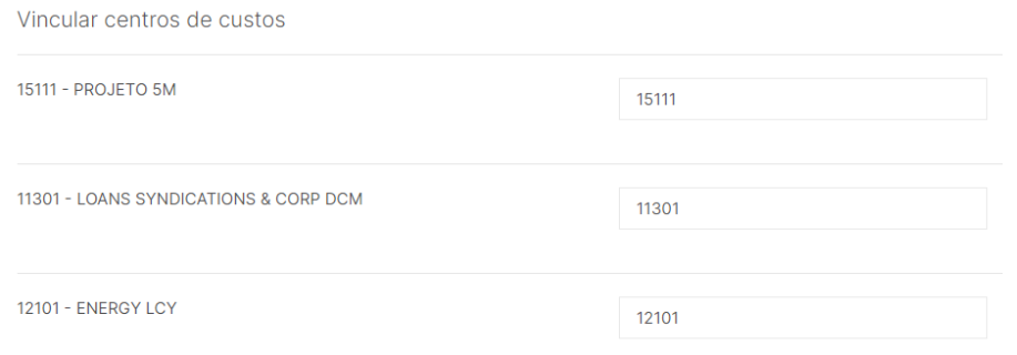 - Também é necessário vincular códigos do Matera para os centros de custos do VExpenses.