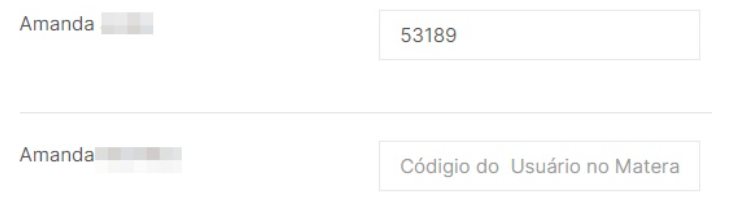 - Os usuários cadastrados na VExpenses devem ser relacionados com os códigos de usuários do Matera.