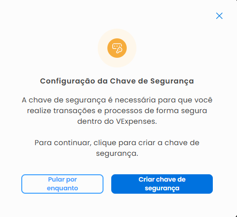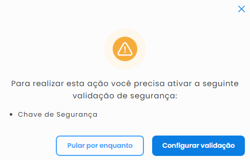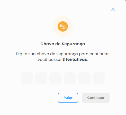 ⚠️ Após a confirmação da chave de segurança, o dispositivo permanece validado por 1 hora.4. Caso ainda não tenha chave de segurança cadastrada, a tela de cadastro será aberta e será possível criá-la.