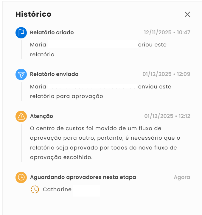 Se dentro de um mesmo relatório existirem despesas aprovadas e reprovadas, o usuário receberá o relatório com o status de "Reprovado", mas só precisará ajustar as despesas reprovadas.