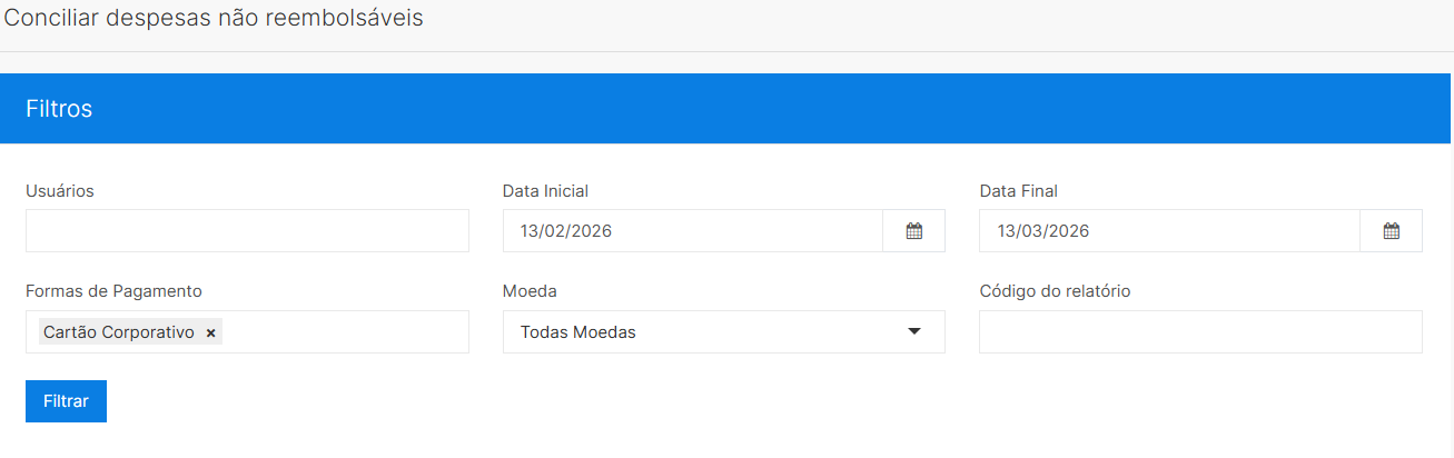 [Imagem dos campos que podem ser filtrados para conciliar as despesas não reembolsáveis]