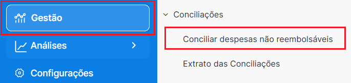 1. Acesse a aba Gestão > Conciliações > Conciliar despesas não reembolsáveis