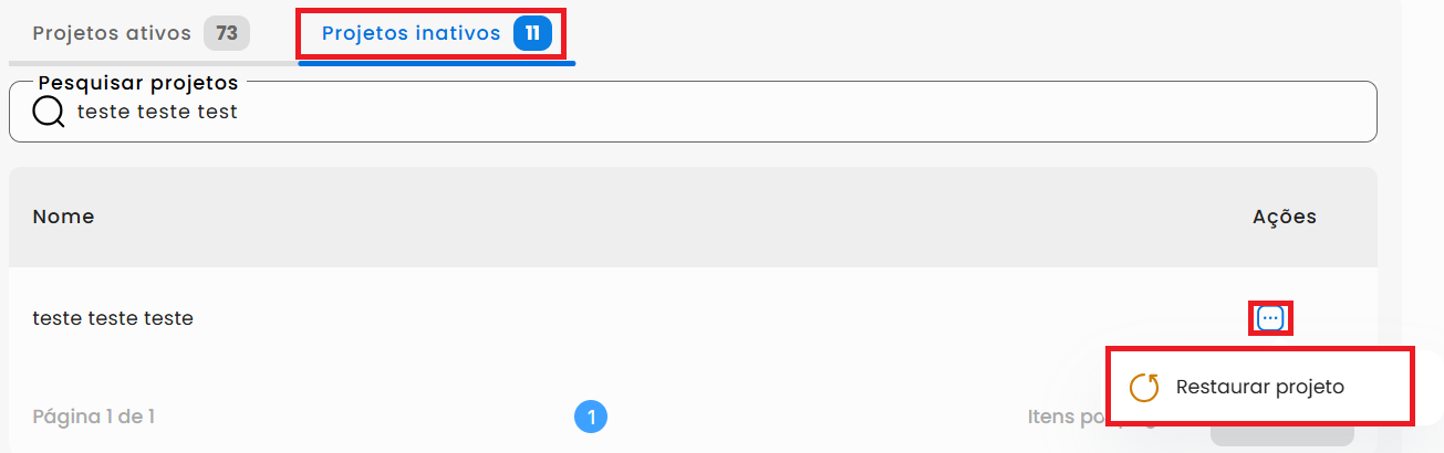 5. Ao finalizar, o projeto será criado e ficará disponível para ser utilizado nas despesas e relatórios dos membros vinculados. No futuro, caso queira fazer edições no nome desse projeto, basta acessar "Configurações" > "Projetos", buscar o nome do projeto e clique em "Ações" > "Editar projeto".