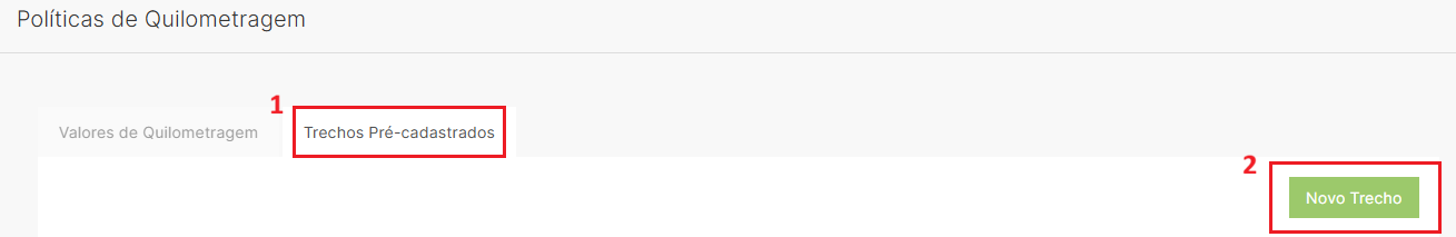 2. Em seguida, clique em "Trechos Pré-cadastrados" e selecione a opção "Novo trecho".