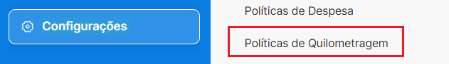 1. O primeiro passo é clicar em "Configurações" e selecione "Políticas de Quilometragem".